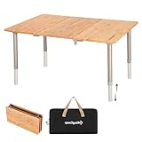 KingCamp アウトドア テーブル 高さ調整可能 竹製 キャンプ 折りたたみ ロールテーブル